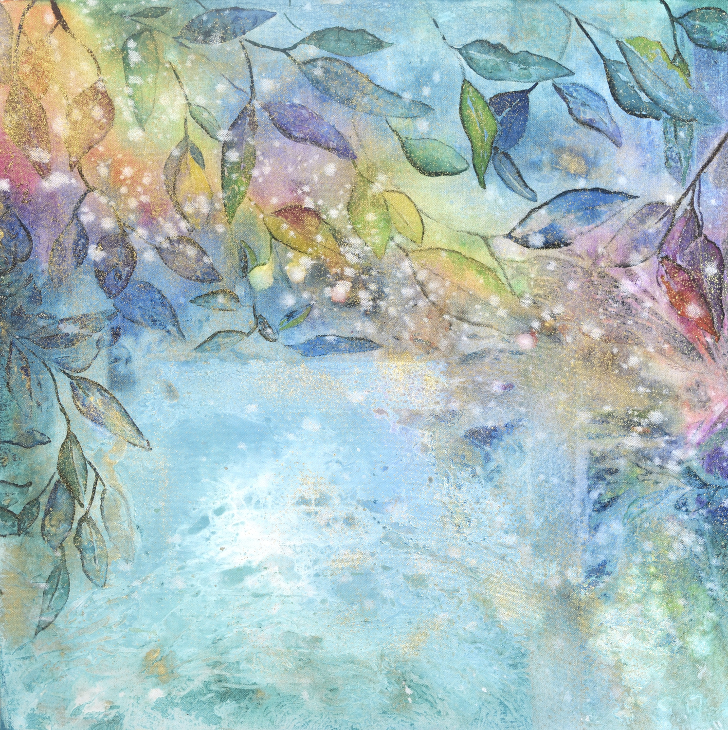 I’m trying to paint colours beyond words, where colour is tangible, where light has weight, where substance sparkles like jewels, and where a myriad of sparkles dance in the air even when the air is so still that it is like a page in a book. I am trying to paint where Love is translated into substance that glows like a warm golden light, where time is fluid yet solid, where a human being has no choice but to fall to their knees – and there is no fear, no judgement – just purest Love.