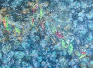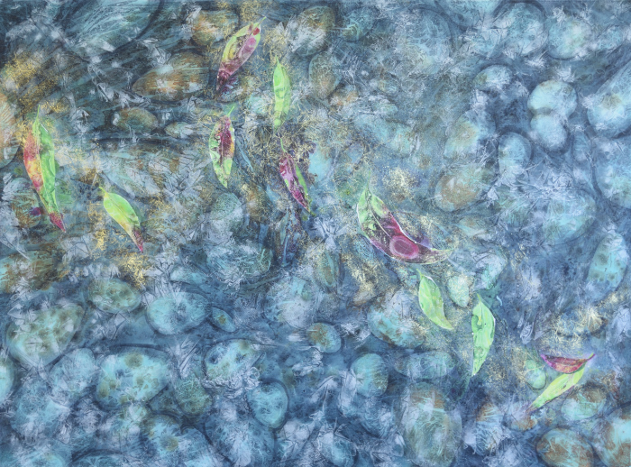 Threads of interconnectivity between nature and Spiritual are visible through all of creation, and this is what I made visible through pebbles, water, leaves, fractured breath of reflections, and the encouragement to look deeper and see the miraculous in the ‘ordinary.’